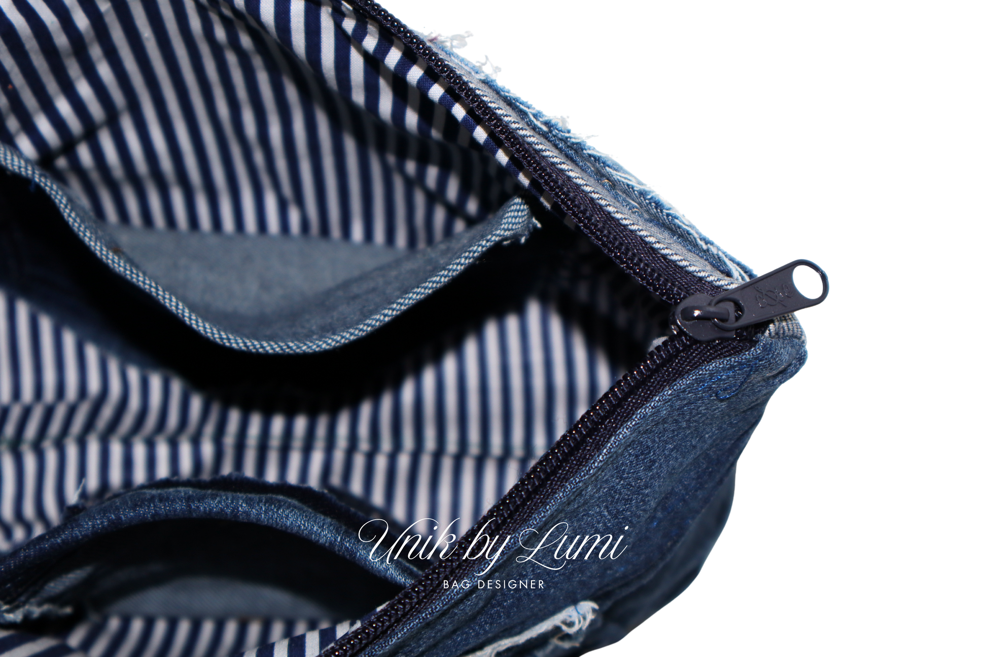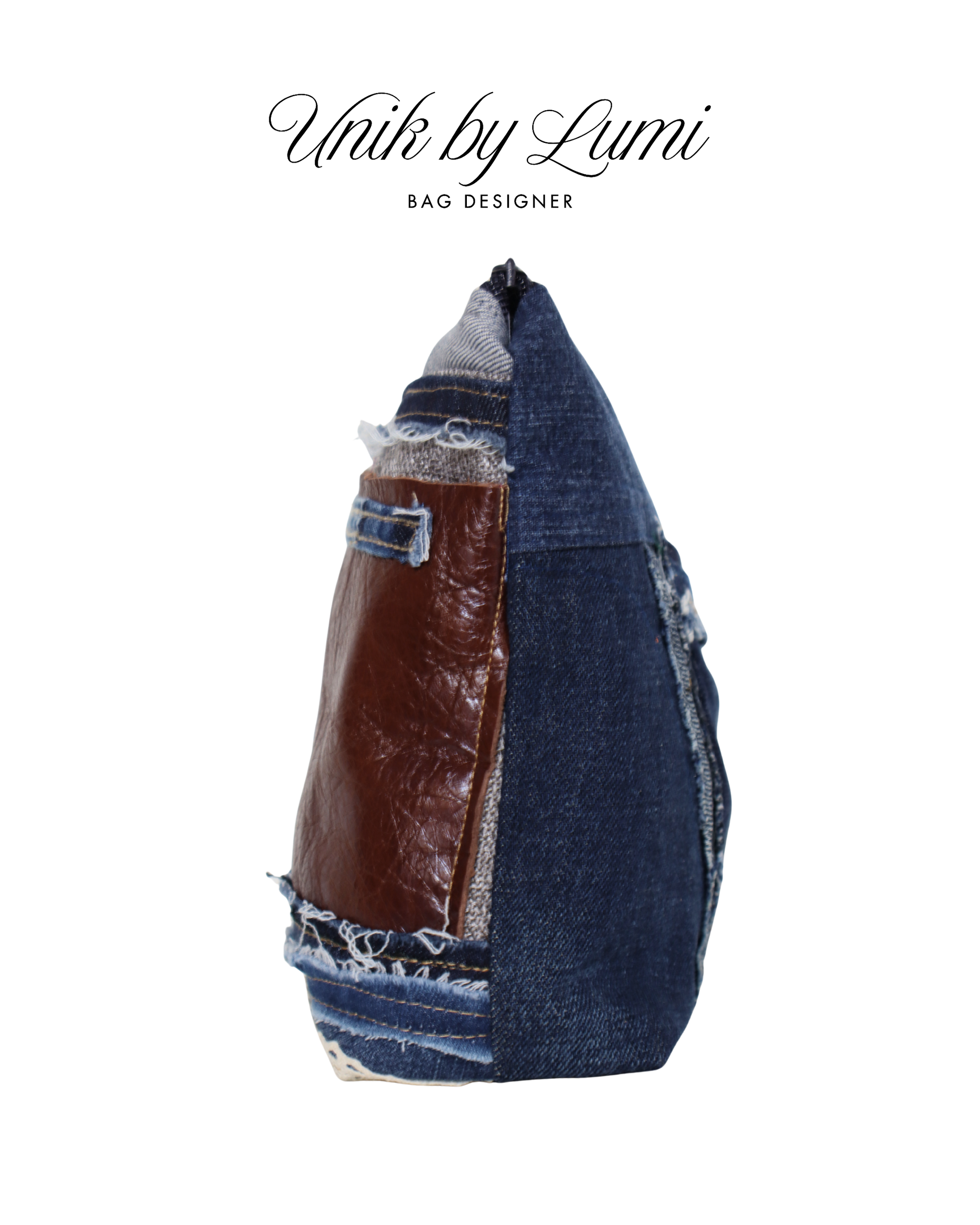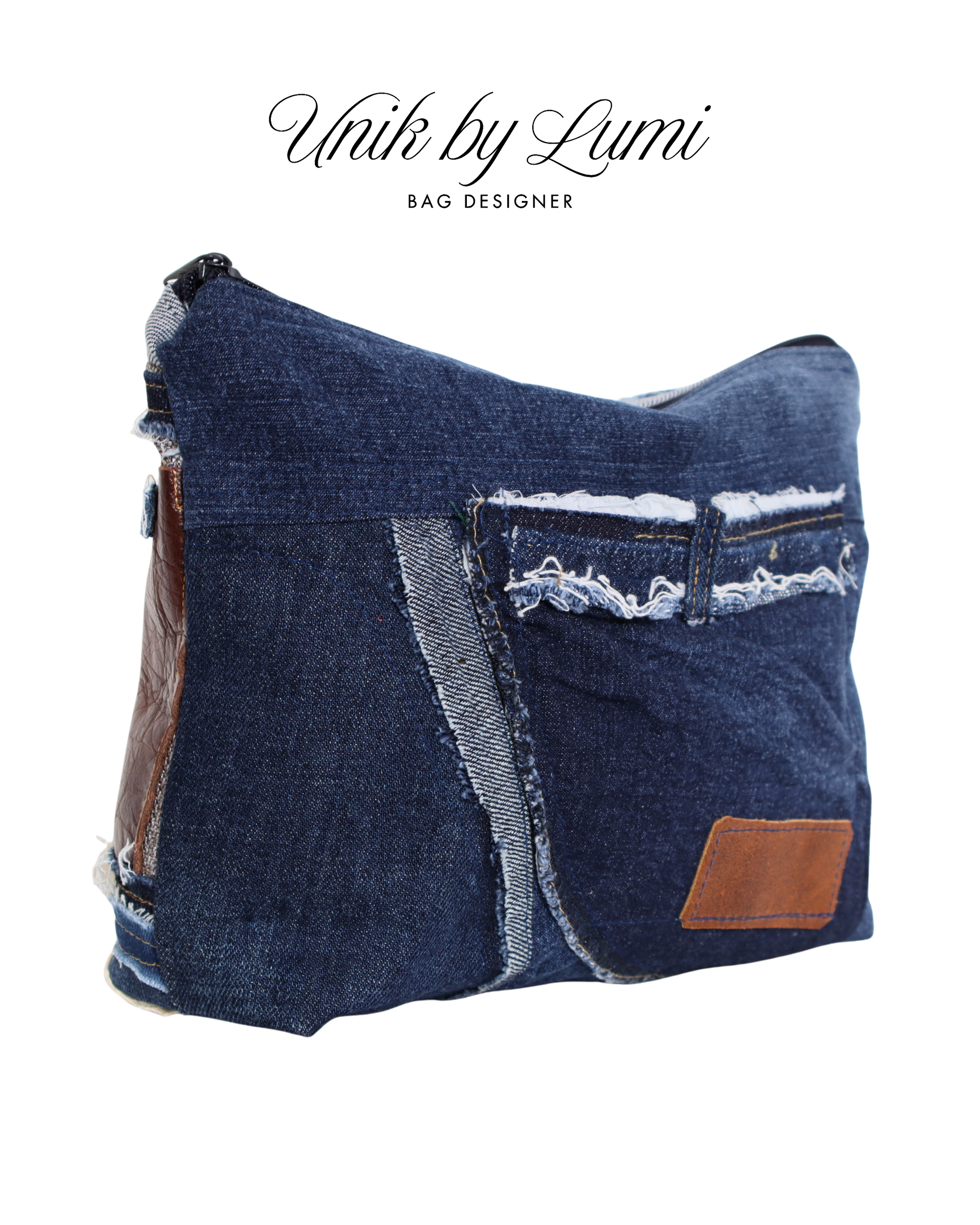 Procurava uma mala única em ganga e pele – espaçosa, ecológica e cheia de personalidade? Esta foi feita à mão em Portugal com muito cuidado, concebida para se destacar de todas as outras malas.