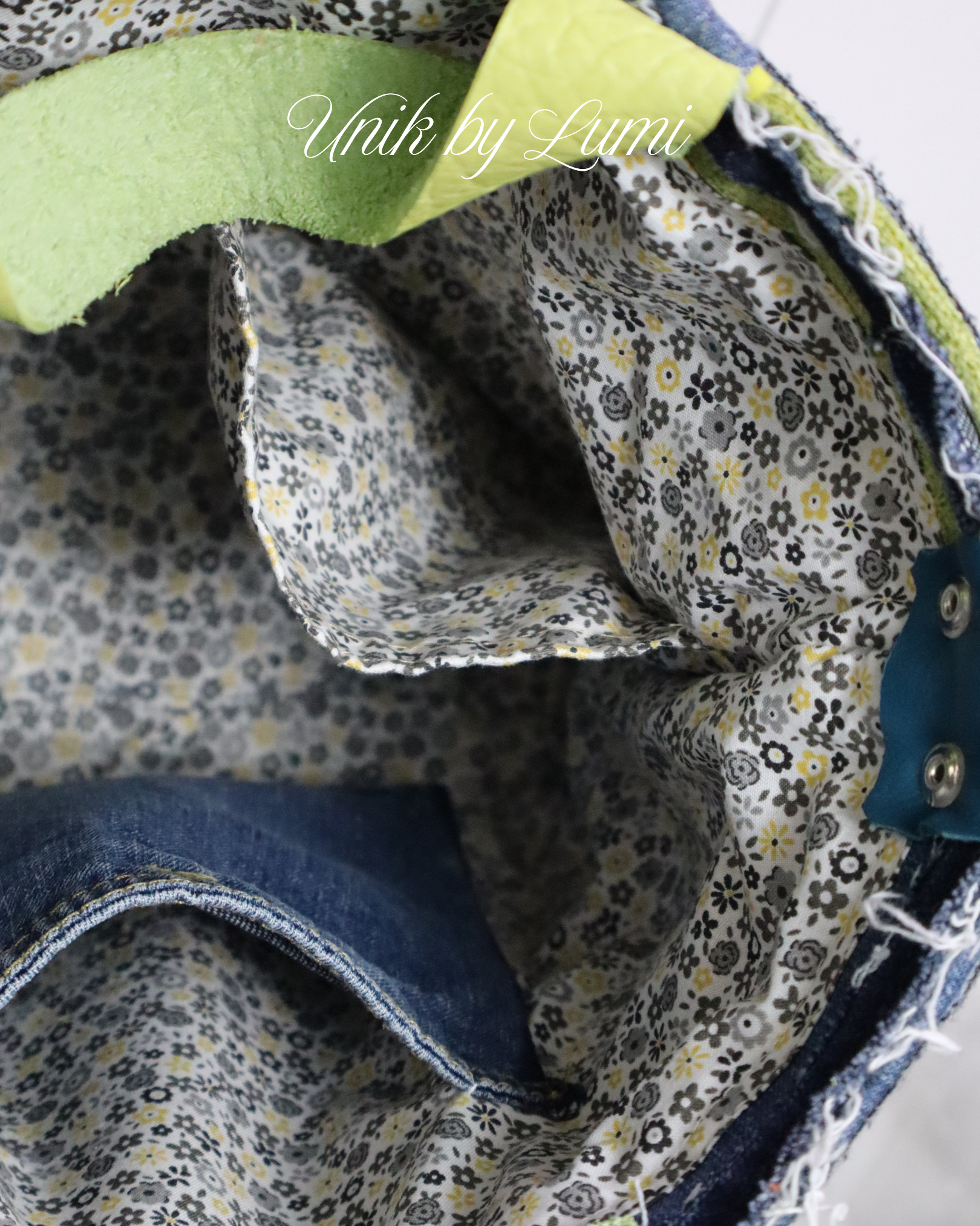 Luxurious Colourful Handmade Denim Bag with Leather | Sustainable High-Quality Recycled Jeans Bag